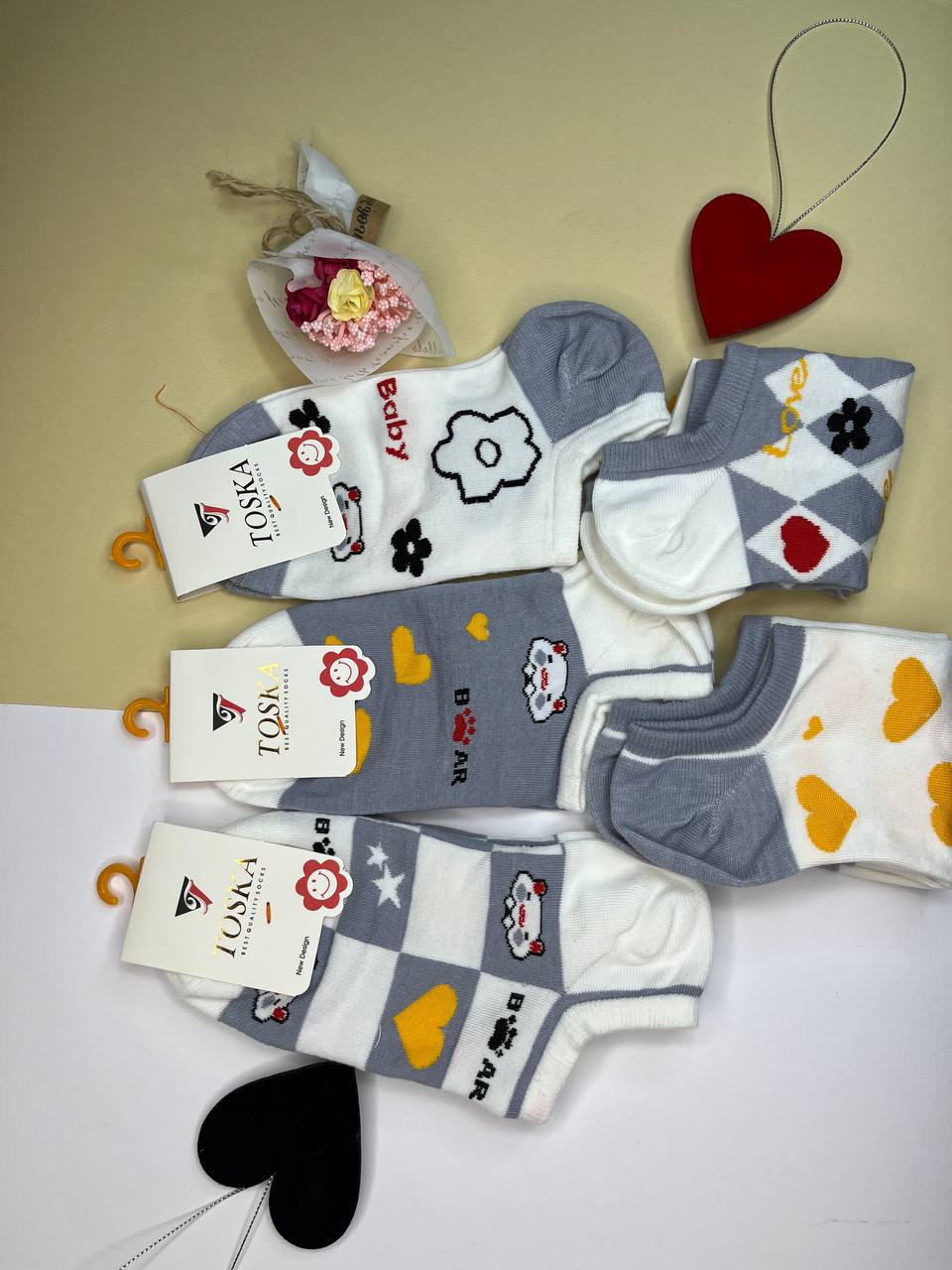 (10جفت)جوراب زنانه زیرقوزکی طرح قلب کد2200