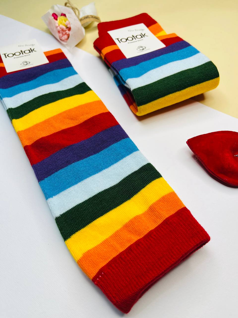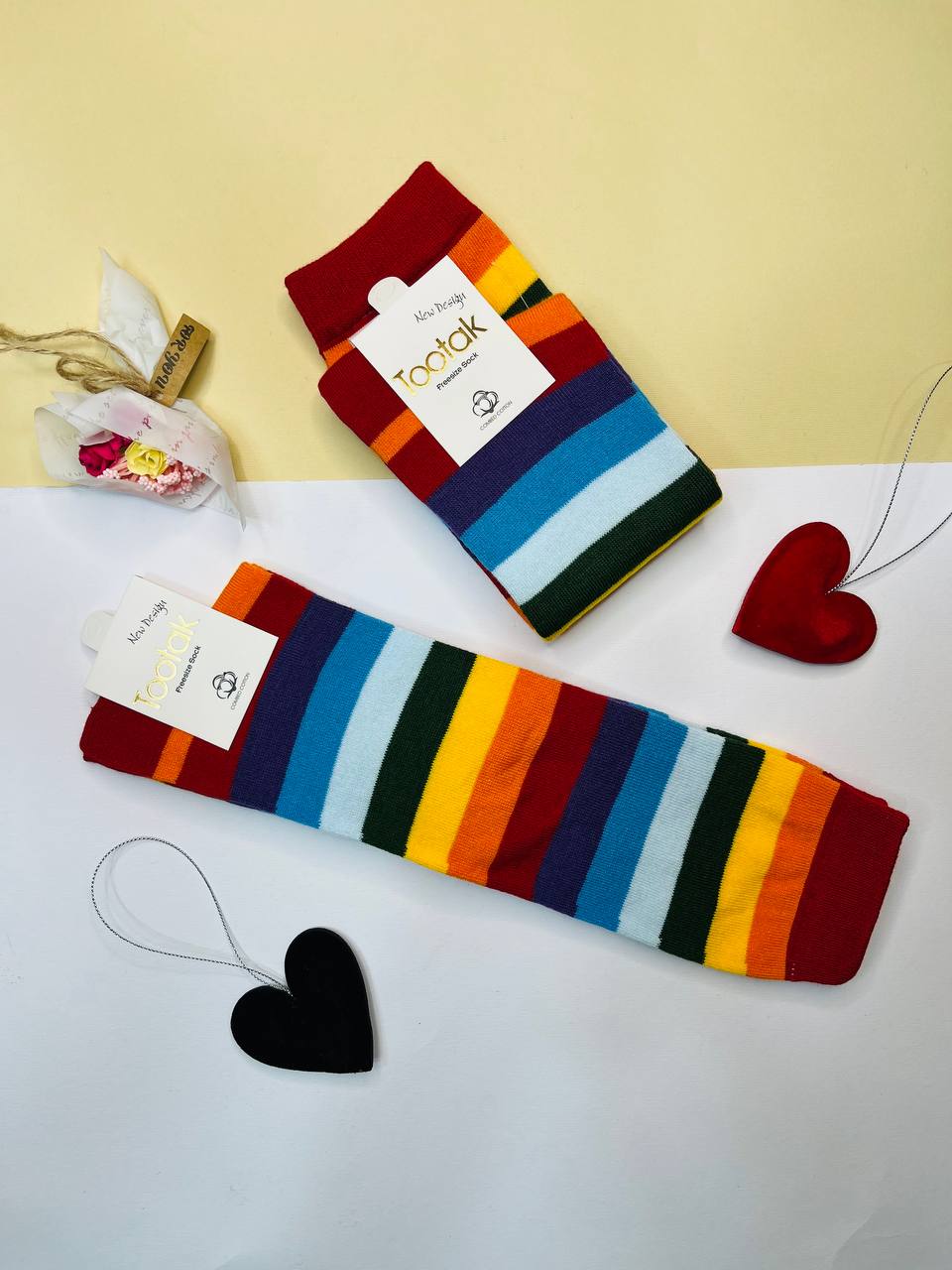 جوراب زنانه(12جفت)زیرزانو سه ربع رنگین کمانی کد2224