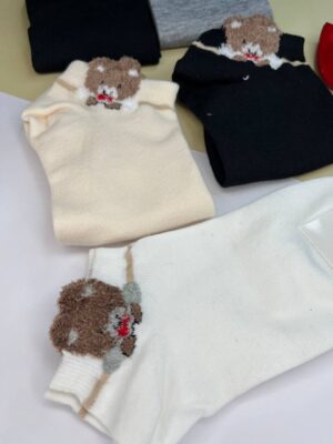 (12جفت)جوراب مچی بچه گانه بوکله دار طرح تدی کد5001