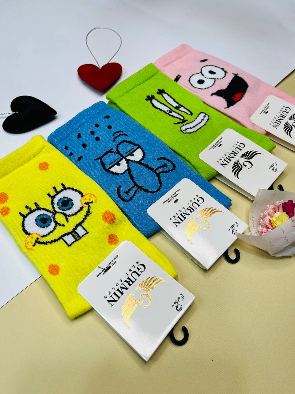 جوراب فانتزی(12جفت)ساق بلند باب اسفنجی کد3025