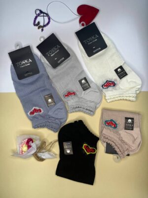 (12جفت)جوراب مچی زنانه تک رنگ مشکی طرح تدی کد2047