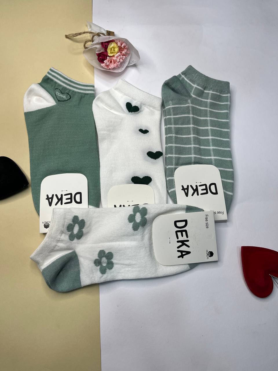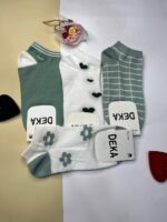 جوراب مچی زنانه(12جفت)فانتزی دکا سفیدوسبزکد2119