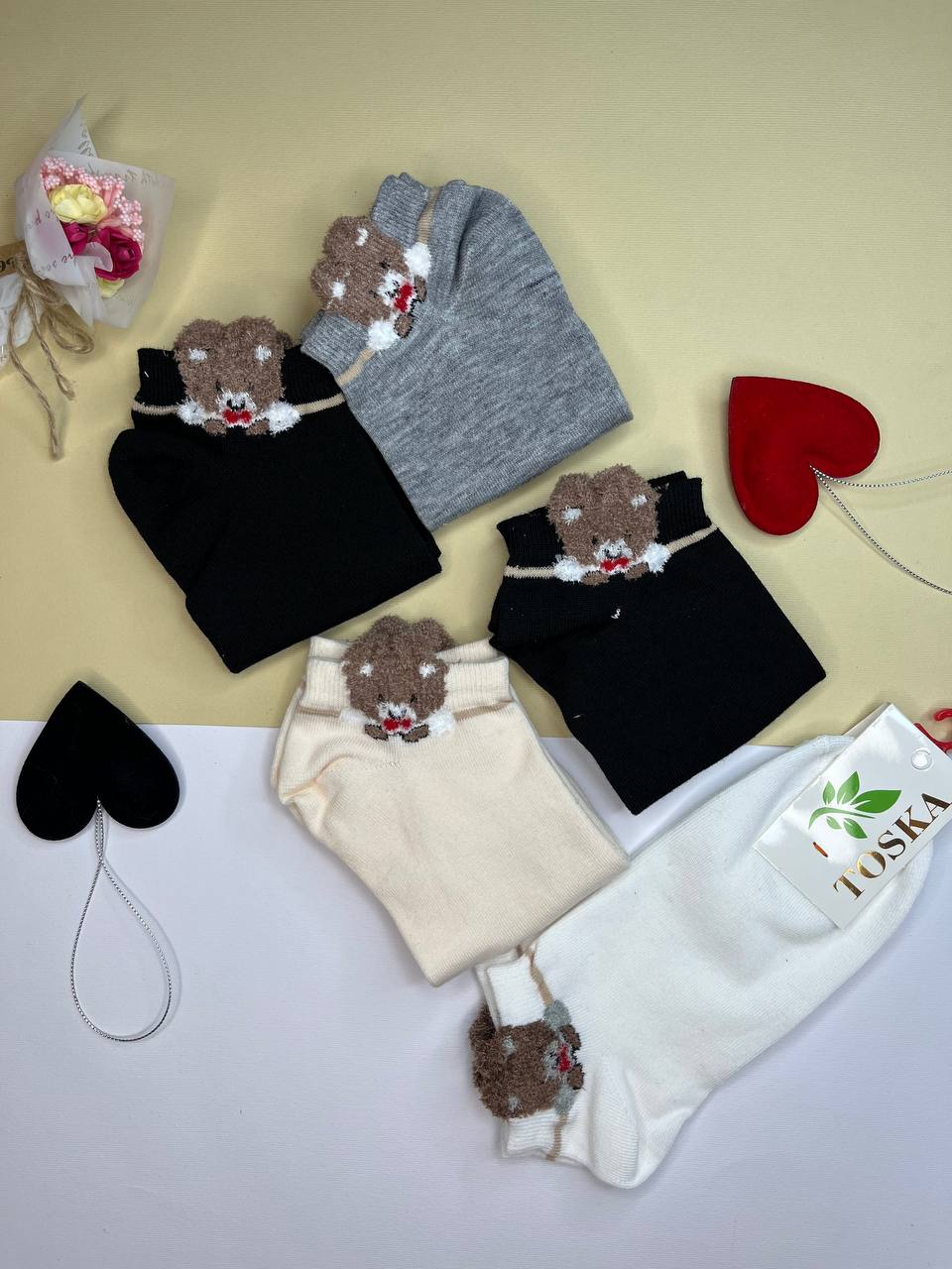 (10جفت)مچی زنانه طرح خرسی بوکله دار کد2012