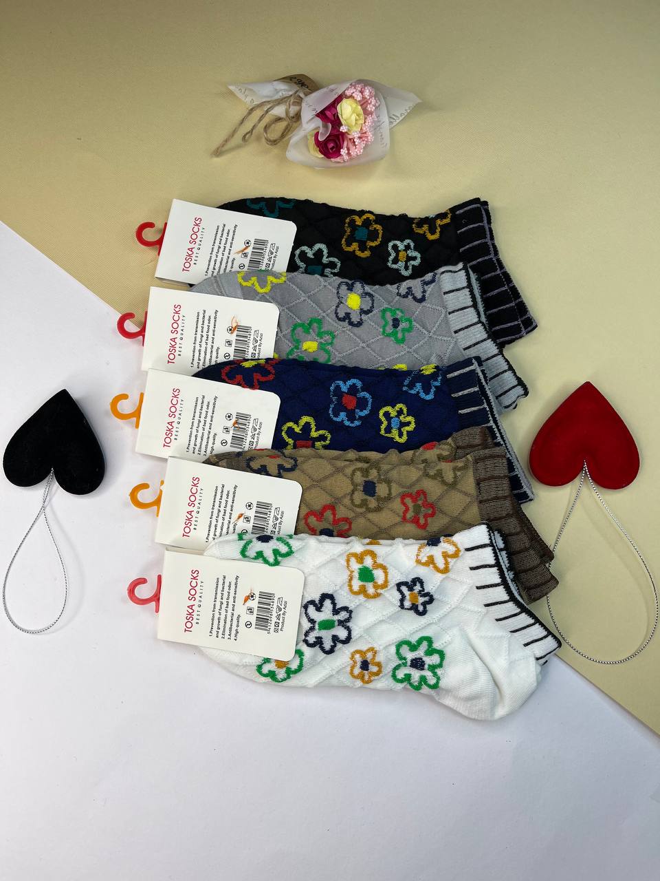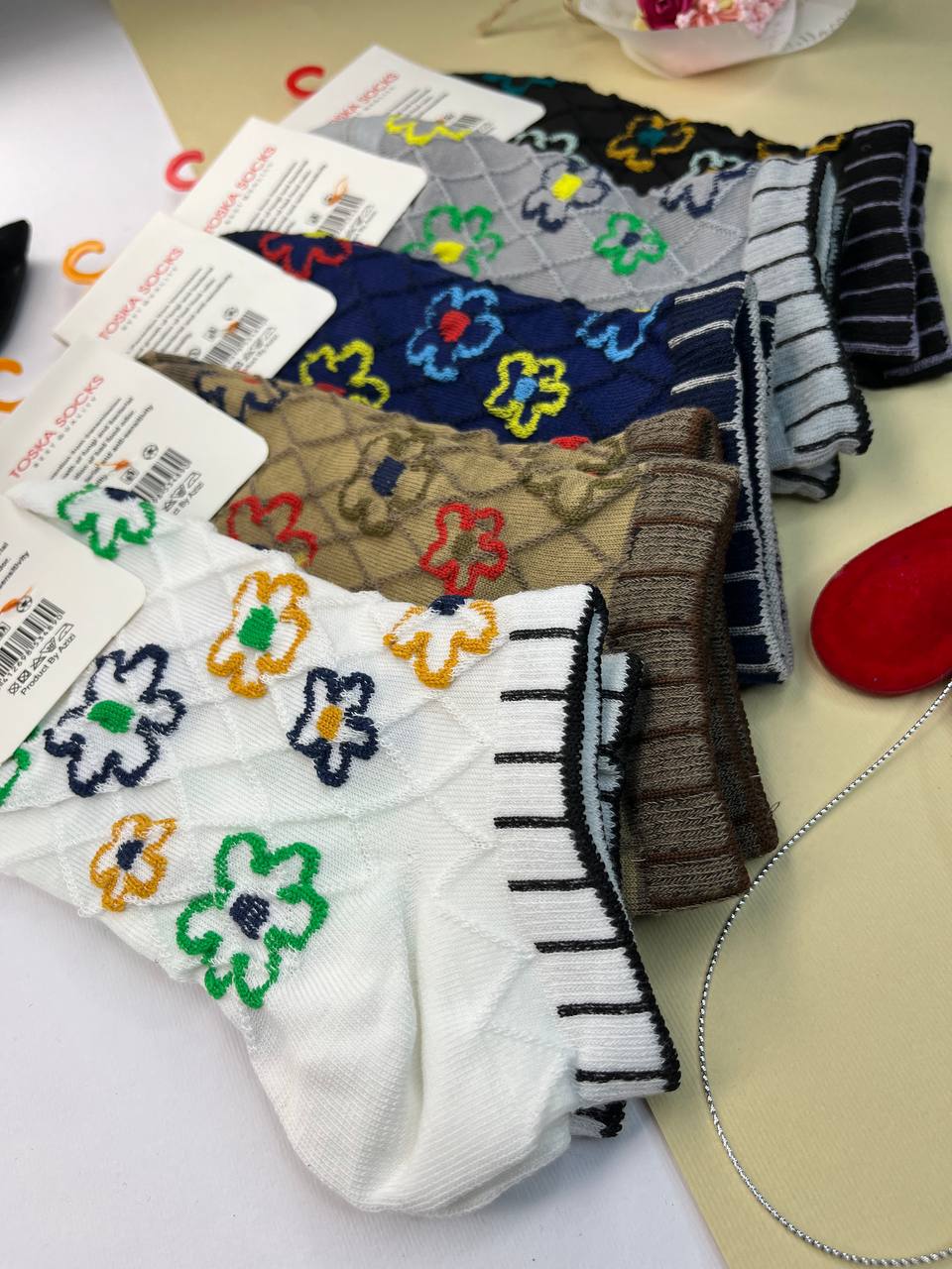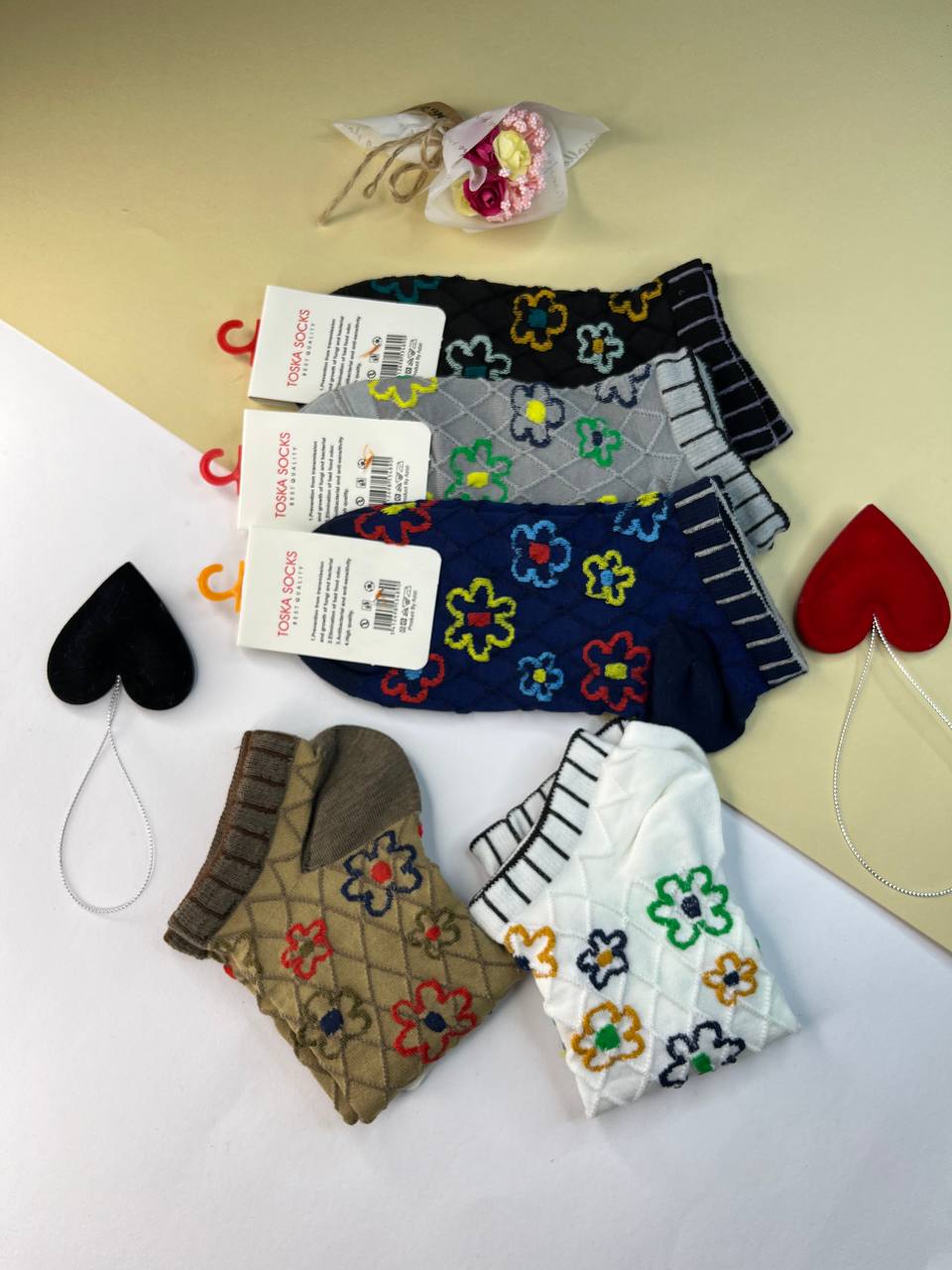 (10جفت)جوراب زنانه مچی طرح برجسته گل دار کد2067