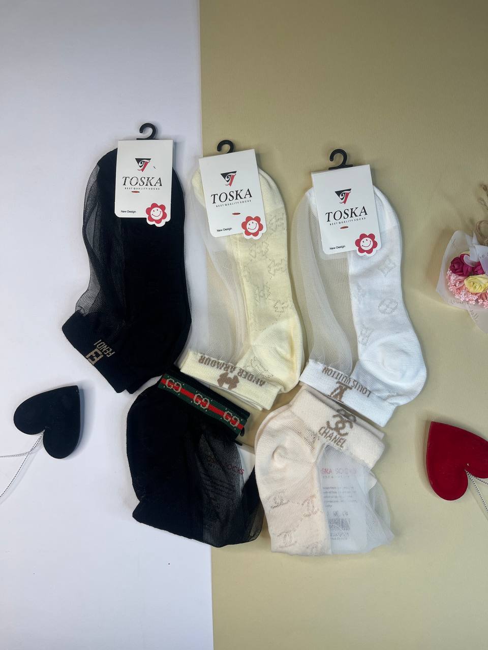 (10جفت)جوراب مچی زنانه توری و نخ پنبه طرح گل کد2112