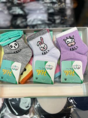 (12جفت)جوراب مچی بچه گانه بوکله دار طرح تدی کد5001