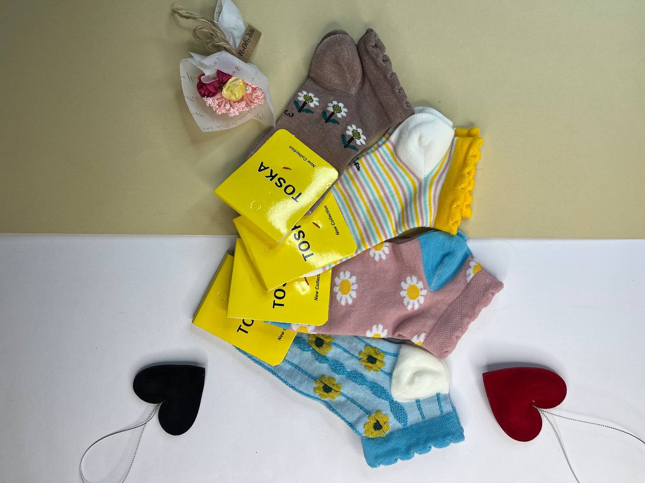 (10جفت)جوراب مچی زنانه توری و نخ 5رنگ کد2097